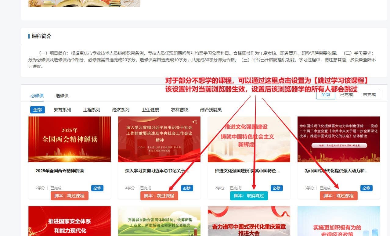 脚本安装步骤:1、安装浏览器扩展程序:篡改猴。2、点击上面的红色按钮安装脚本。3、回到你的学习网站,刷新下网站,根据提示注册/登录脚本账号。4、参考这个文档购买授权。