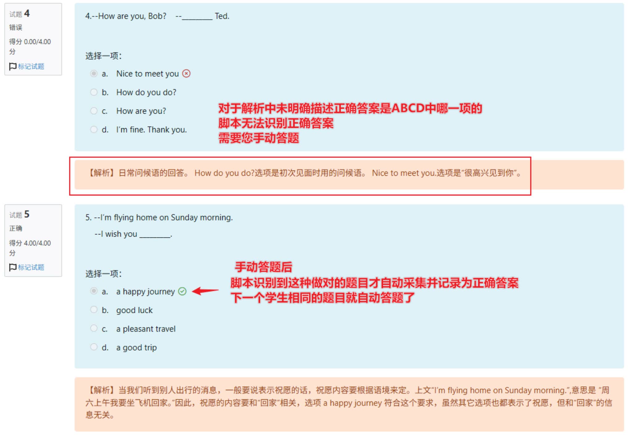 但是部分题目如果解析中没有明确说答案是什么的,脚本就无法处理,如下图所示: